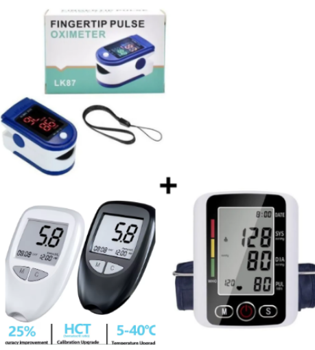 MEGA COMBO SALUDABLE: Glucómetro + Tensiómetro + Oxímetro 3 X 1